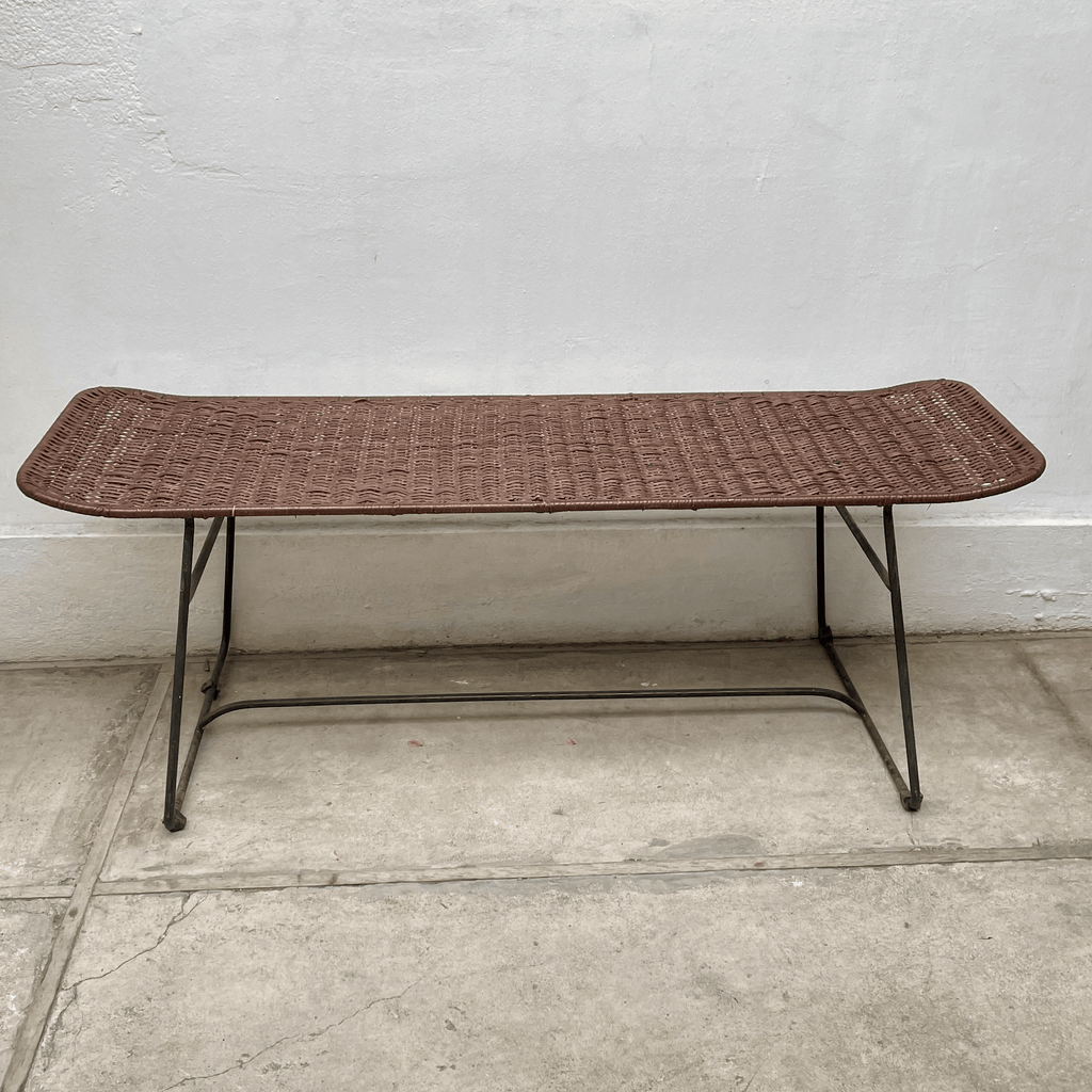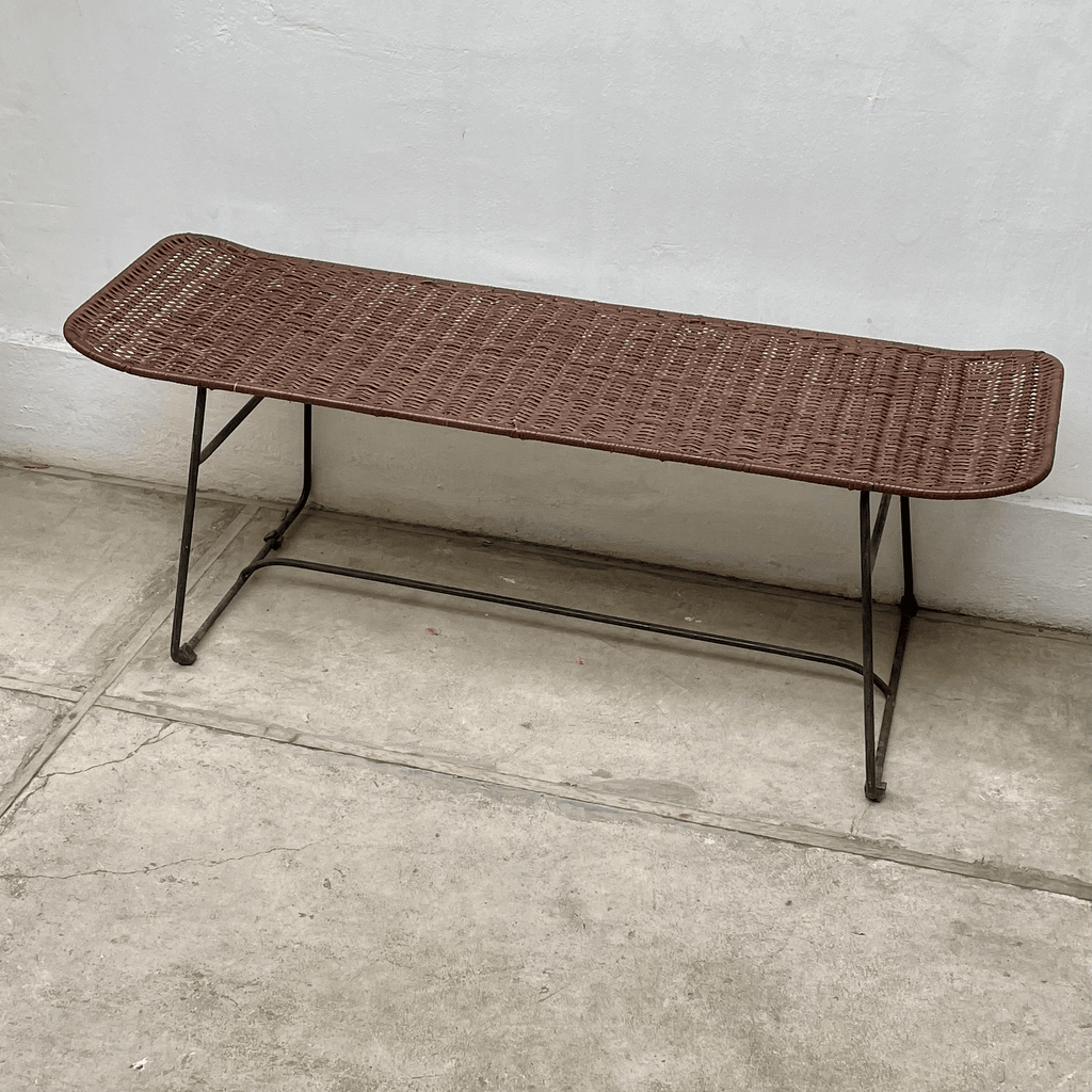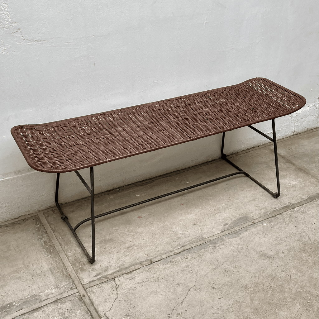 Linda banqueta en mimbre achocolatado ideal para los pies de la cama o bien como complemento de tu living o terraza. Medidas: 120 cm de largo x 40 cm de alto x 35 cm de fondo.