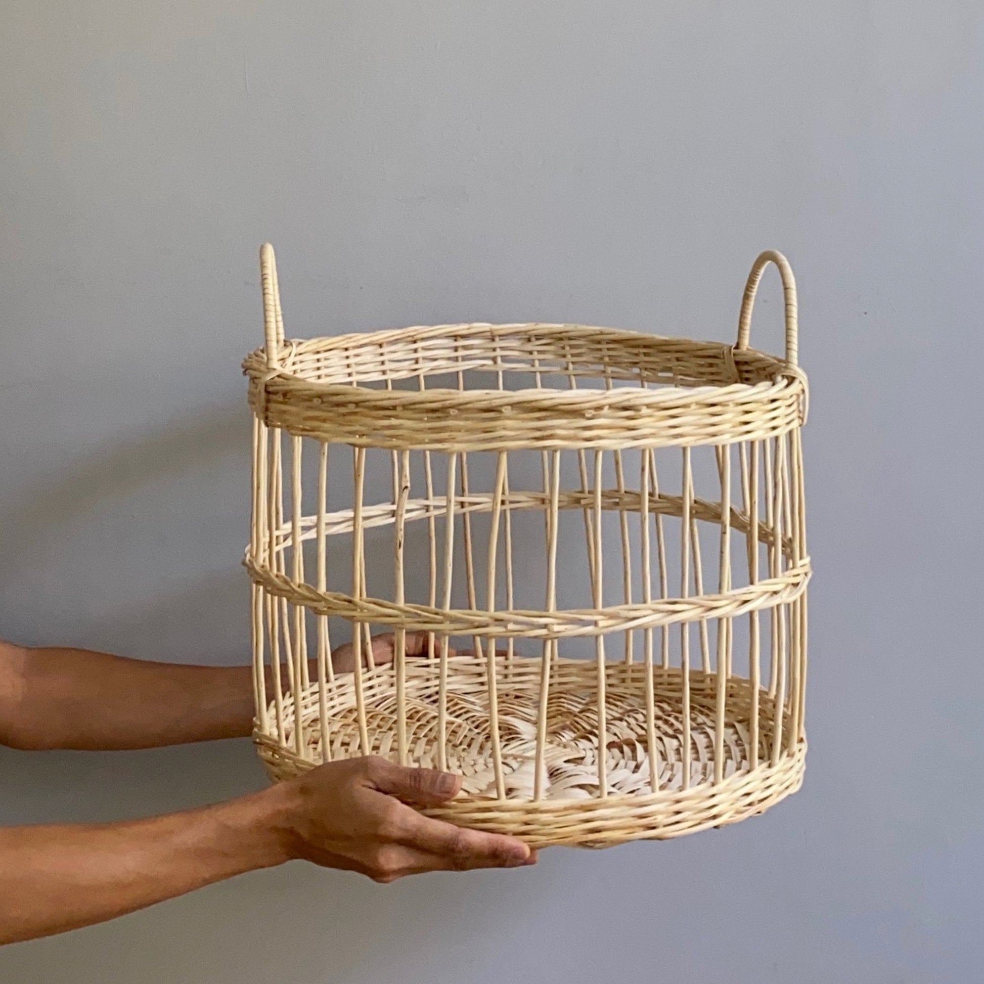 Estos canastos los hicimos pensando en algo que permitiera guardar pero que al mismo tiempo fuera muy minimalista. Buscábamos algo diferente a nuestros canastos tradicionales, pero que mantuvieran su molde y estilo. Así llegamos a este modelo, cuyas varillas lo hacen totalmente see-trough, permitiéndote guardar y decorar con un toque diferente.