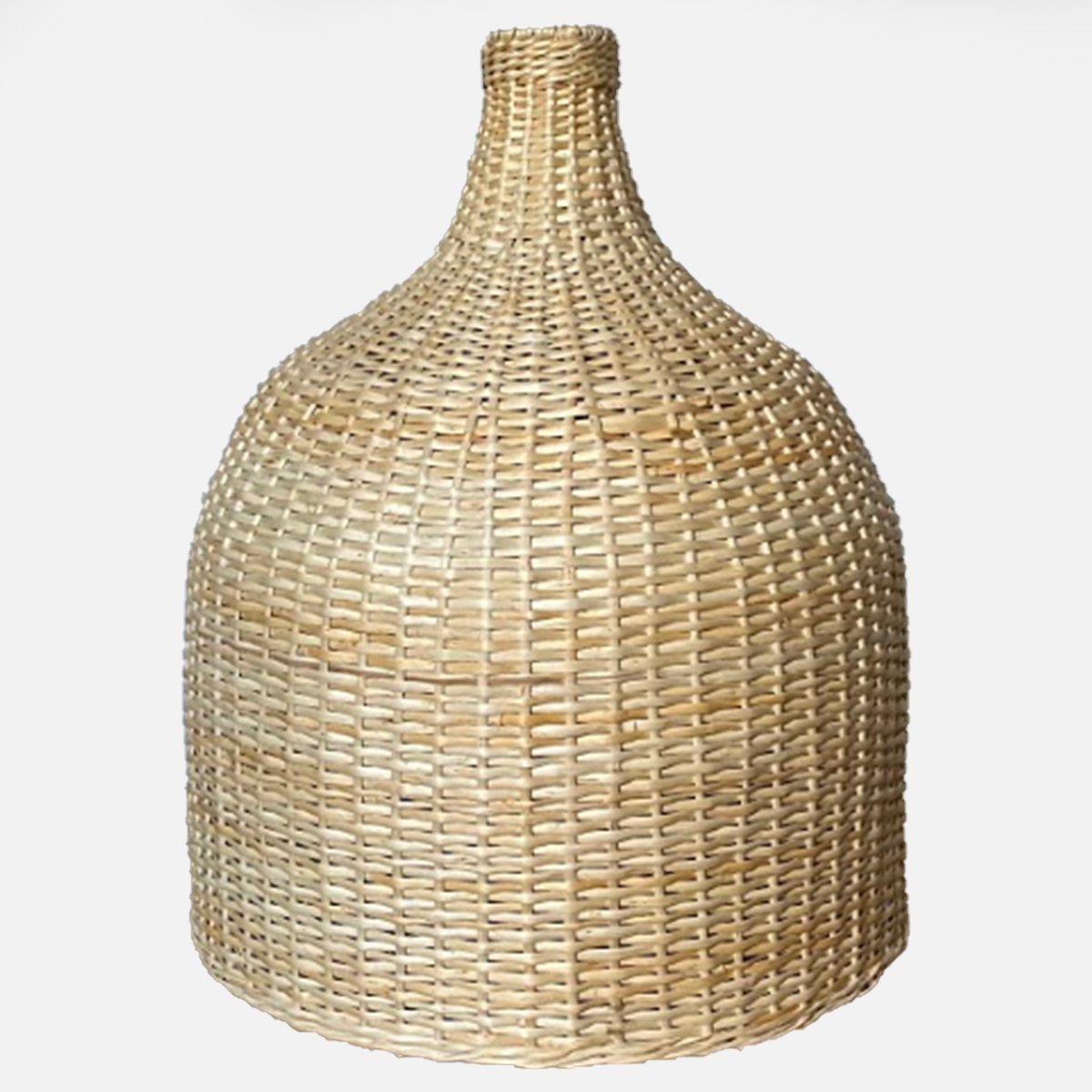 Hermosa pantalla de mimbre con estructura de alambre y forma de campana, perfecta para darle un toque de calidez a tu pieza o terraza.