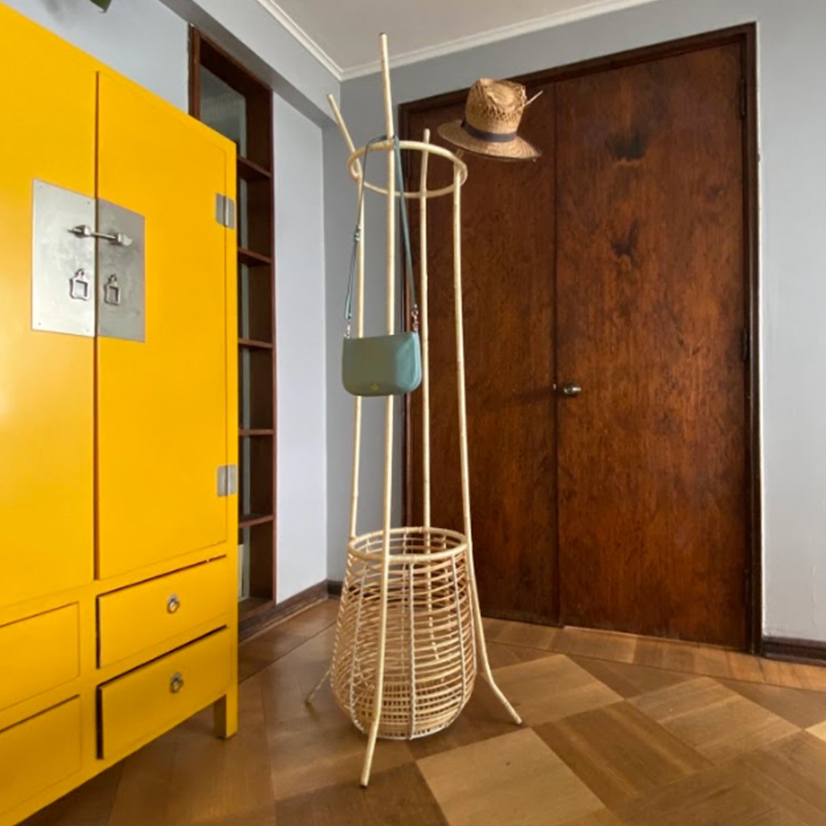 ¡Como no amar los percheros! Tan útiles para ordenar ropa, carteras o sombreros en la entrada de tu casa. Y este, que además incluye un canasto, será tu nuevo mueble favorito.